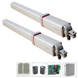 Kit-ul contine 2 motoare, centrala de comanda, receptor radio, 2 telecomenzi si un set de fotocelule.