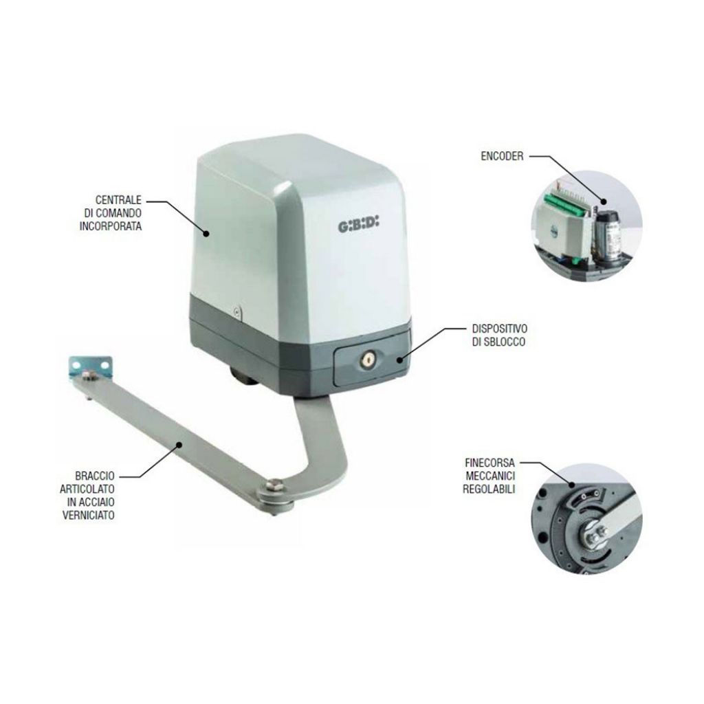 GiBiDi K454/BFSLT este un kit automatizare porta batanta cu 2 canate, lungime maxima canat 2.50 metri, potrivit unei utilizati rezidentiale.