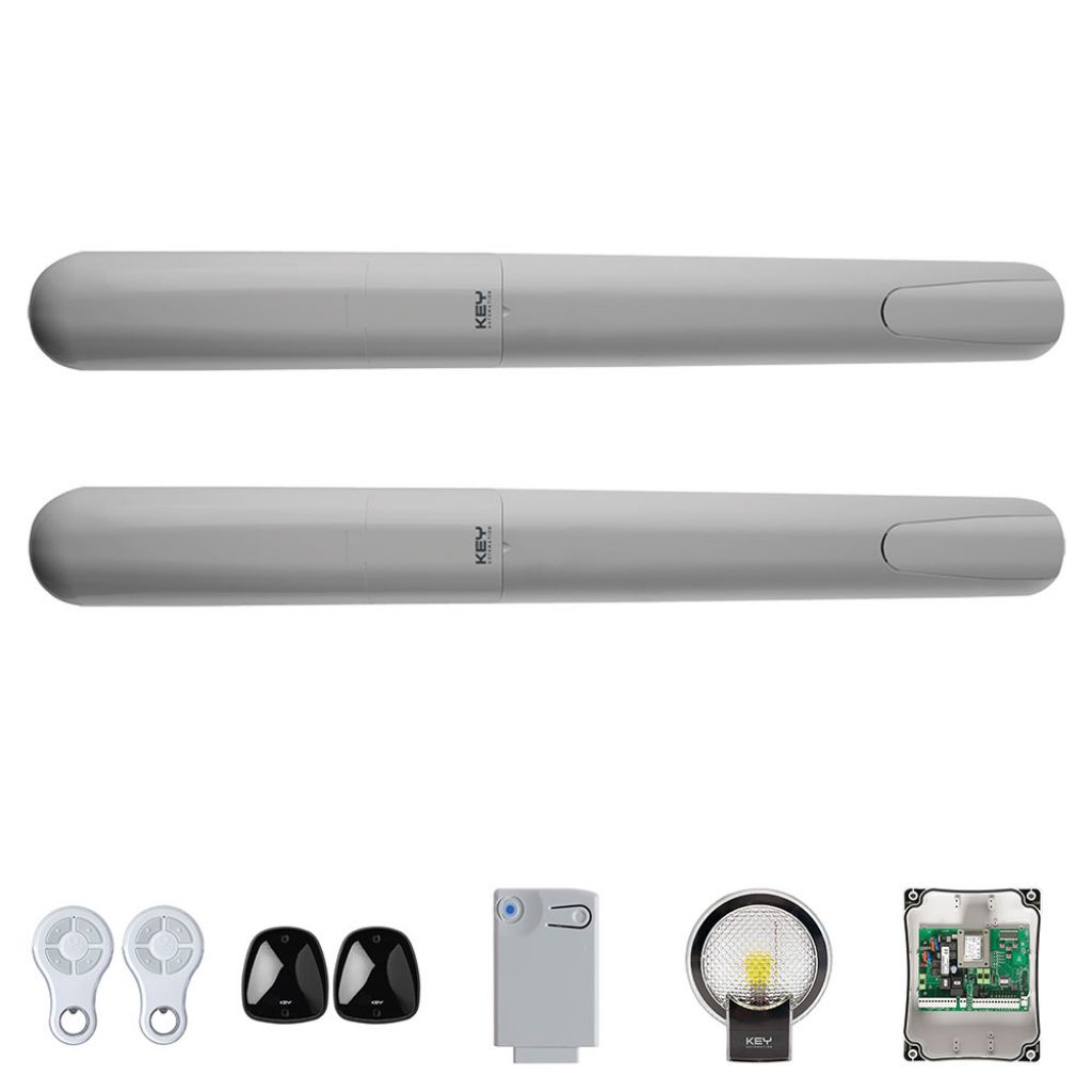 Key Ray KRAY42ES este un kit folosit la automatizare porti batante din zone rezidentiale cu lungimea canatului pana la 4 metri si greutatea de pana la 600 Kg.