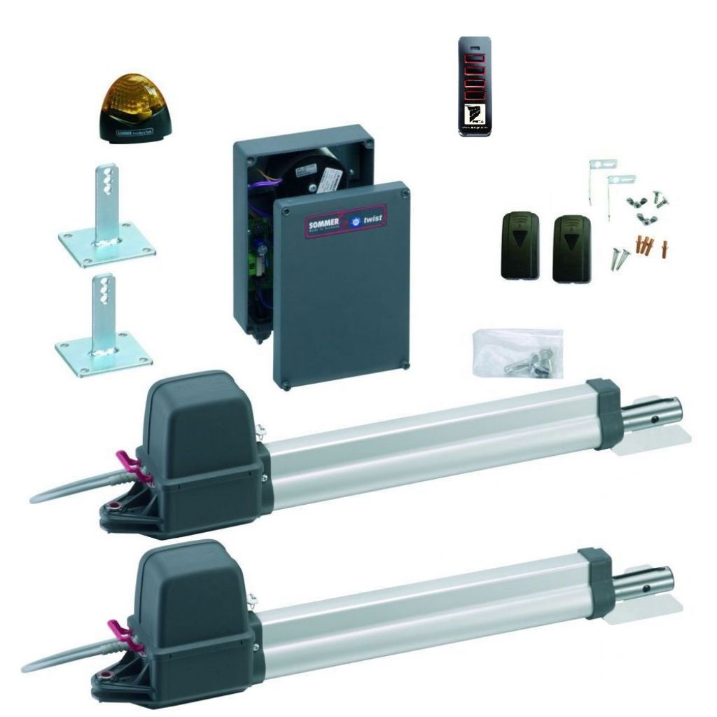 Kit automatizare poarta batanta Sommer Twist 200 E, 2x2.5 metri, 200 kg, 24 V este un operator electromecanic pentru porți batante cu 2 foi pentru utilizare acasă pentru lungimea frunzei de 2,5 m.