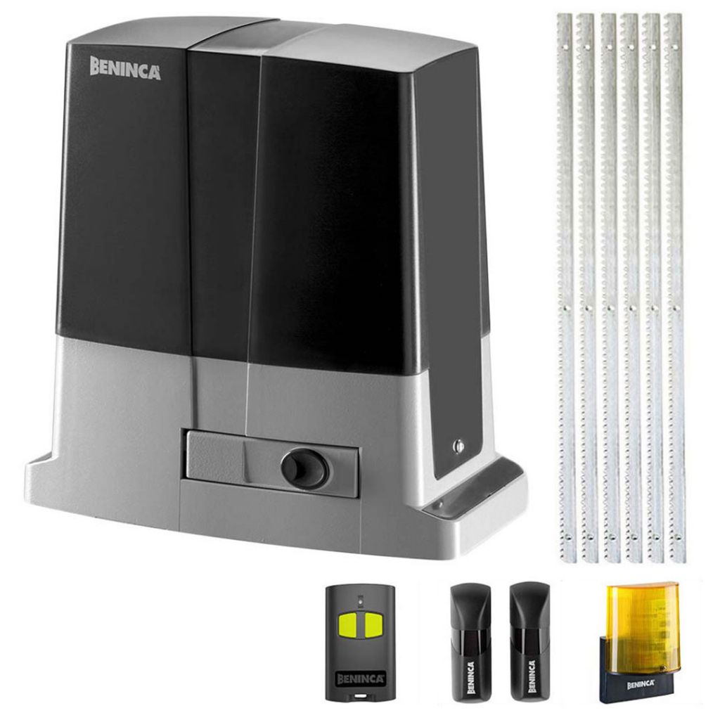 Kit automatizare poarta culisanta Beninca KBULL5M MY11 cu 6 m cremaliera metalica, 500 Kg, 230 V este un kit complet cu motor de 230 Vac utilizat pentru automatizari porti culisante cu greutatea maxima 500 Kg.